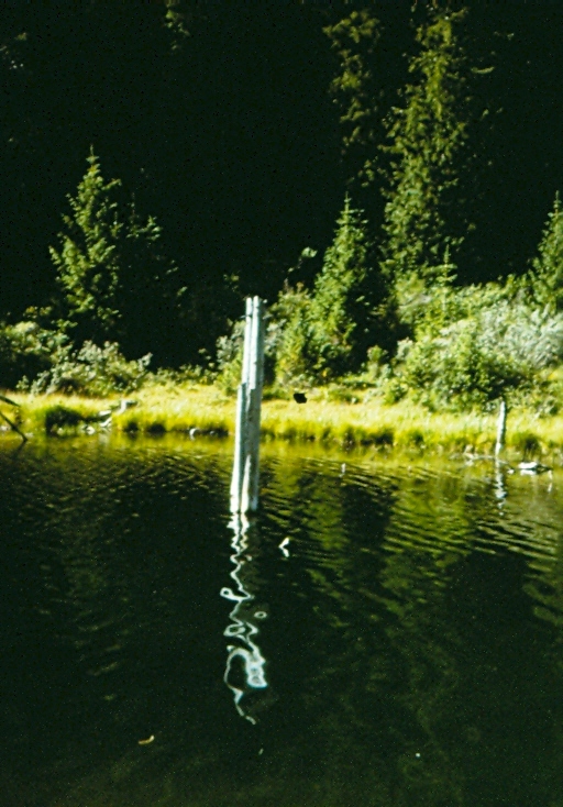 След пет часа много приятно спускане покрай река Ак-су достигаме малко езерце до което правим лагера. Езерцето е с площ 2 - 3 декара и е съвсем младо. Вероятно, най - много, преди стотина години, след накакъв катаклизъм е станало срутване на земни маси, подприщили пътя на рекичката. Все още в единият край на езерцето стърчат стволовете на дърветата растяли някога край реката.
