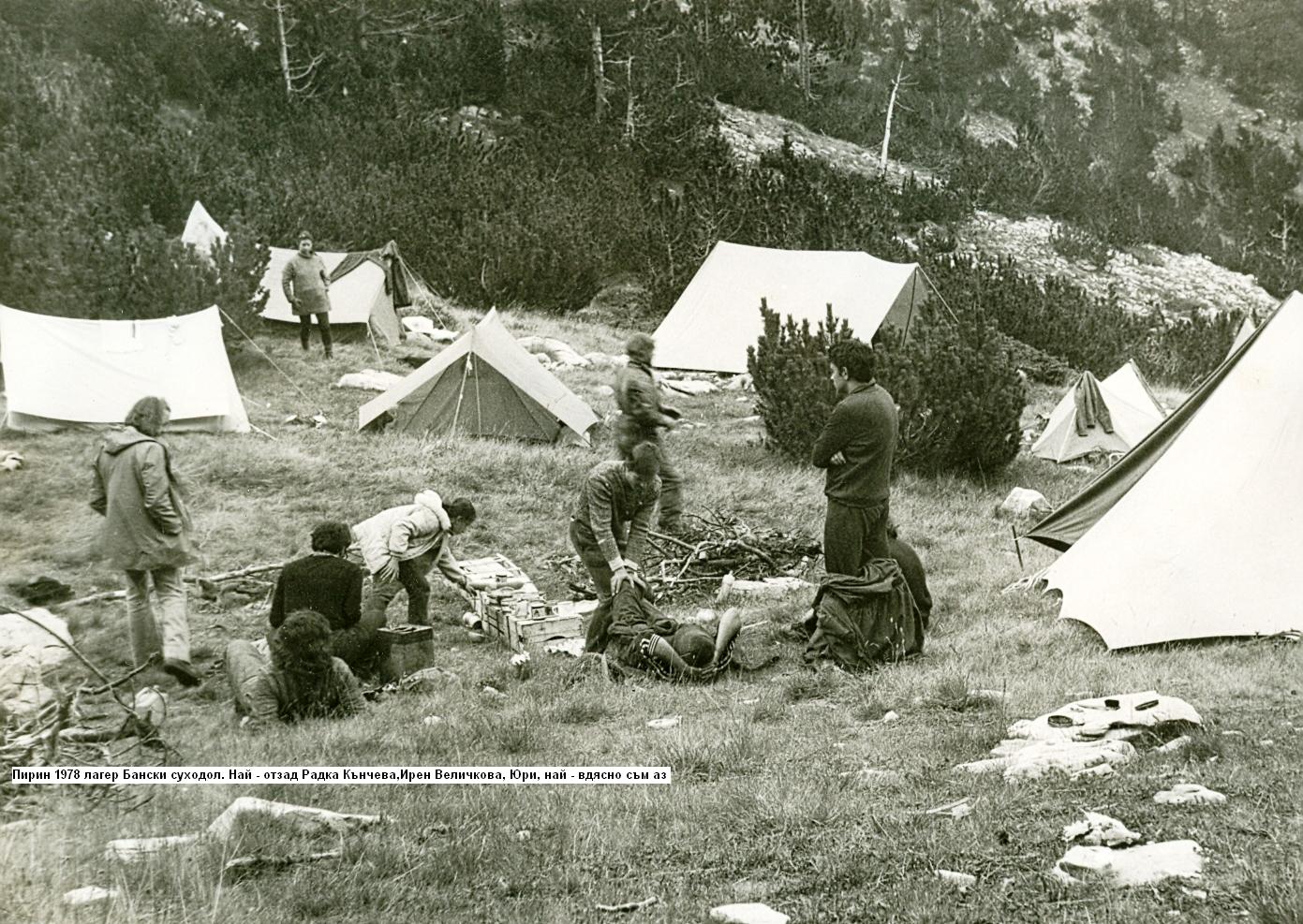 Пирин 78. 19-30 08 1978. Бански сухудол.Състав: Иван Личков,Радка Кънчева, Красимир Кънчев, Петко Съйнов, Константин Йотов, Юрий Градинарски, Блага Иванова, Трайчо Кусев, Павел Иванов, Лиляна Мачева, Чавдар Банов, Валентин Костов, Владо Попов, Севда Попова, Марина Козарова, Ирен Величкова, Бил, Филип, Роза, Дейвид, последните четирима са от Шефилд.