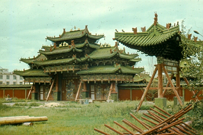 В този момент лъсва възможността да се измъкнем от Монголия е на 8-ми и веднага се записваме за полета, без О.К.-я за София за съжаление. Изобщо тъпа история, добре поне,че ако всичко върви нормално ще се добереме по-рано до Москва. На следващия ден - какво друго ни остава - започваме да обикаляме музеите. Води ни Герел. Води ни е силно казано,тъй като и тя е колкото нас запознат с Улан Батор.Първо отиваме в историческия музей - той е строен с такава цел преди неизвестно колко години, мирише по монголски и има общо взето жалък вид. Започва с геология, минава през зоология и завършва с твърде фрагментарна историческа част. Мацето е по-не наясно с историята си от нас. Общо взето - скръб. След обяда отиваме в зимния дворец на Биогду хан. Няма да се спирам тъй като има диапозитиви. За отбелязване е,че минахме без билети.