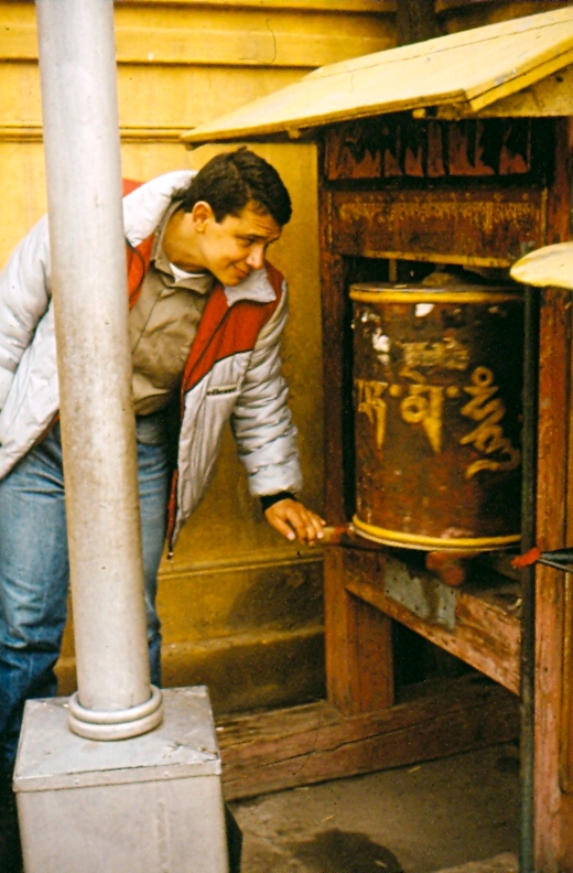 На следващия ден посещаваме Гандана - единственият останал да действува манастир в града. Към него има и манастирски университет. Манастирските храмове не са предвидени за публика. Ламите заемат 9/10 от площта и си мърморят под нос, като от време на време звънят със звънчета и дрънкат по тупани. Естествено филмът ми се свършва още на входа на манастира. Апропо- той –манастирът, не филмът) е бил в известен период - 20-те г. седалище на Далай Лама. Интересно е, че се посещава масово - включително от милиционери и военни, от младежи и дори от малки деца. Въртят си барабаните, удрят си главите в камъните, лягат на специалните лежанки, хранят гълъбите, просят чат-пат и са невероятно мръсни. Има и чейнчаджии и всичката полагаща се напаст на развития социализъм.