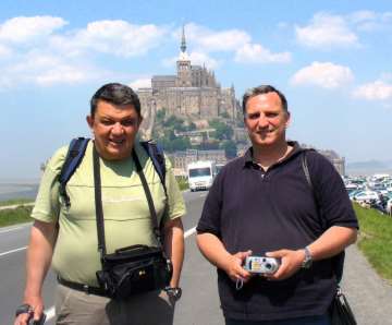 През 1990 се премести във Франция, създаде семейство с една местна девойка, има син и хубава къща…. Ама ми е надалеч, все пак гледаме да се виждаме поне веднъж годишно – там или тук.. На горната снимка сме заедно пред гробницата на Тамерлан в Самарканд през 1989г. На съседната – пред абатството Мон Сент Мишел на атлантическия бряг на Франция, през 2008г.