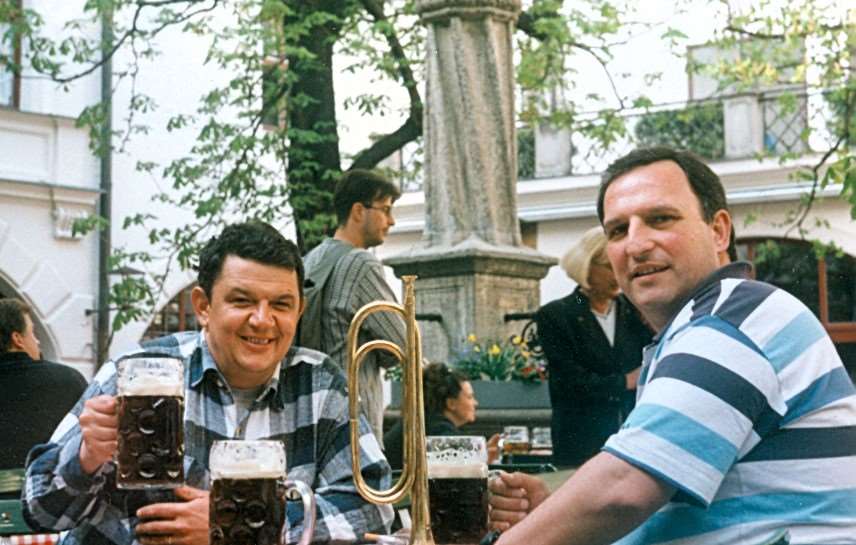 През 2000та години, заедно с мл-ст Петко Живков бяхме в Мюнхен, решихме да пием бира в кръчмата от която беше започнал биреният пуч на Хитлер. По пътя попаднахме на антикварен магазин, с кавалерийска тръба на витрината, такава като в нашия полк. Веднага решихме да я купим и на следващата снимка сме с нея, в поменатата бирария.