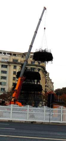 Точно срещу сградата монтират коледната елха, а ние продължаваме по централния булевард, който е с метър по- широк от Шанз елизе. И румънците си падат по това да са най.