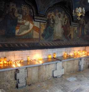 Тамарка купува две малки гривнички и за да не и връщат дребни (около лев и петдесет) и дават 12 свещи. Сещам се,че у нас Синодът продава една свещ за 80ст..