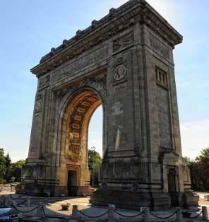 По пътя минаваме към триумфалната арка. Мислех,че е построена по повод победата в първата световна. Приемах това като проява на типичния руманизъм. Да влезеш във войната чак през 1916 и да се съгласиш на срамен мир през пролетта на 1918, практически да нямаш голяма победа и…да вдигаш триумфална арка…. Оказа се обаче,че тя е построена по повод победата в руско-турската война от 1877/1878г., в която румънците се сражават много успешно. Тогава арката е била дървена, в сегашния си вид е от 1936г. Е, доста по-малка е от парижката, но все пак я има.