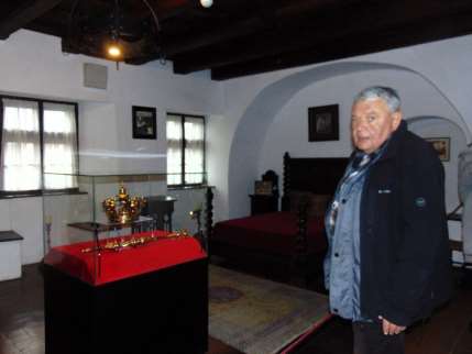 Спалнята му също е сравнително скромна, но за сметка на това в нея са изложени короната и скиптъра на румънските крале…. ние такива сме нямали….