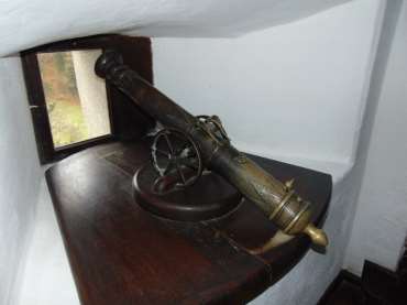 Минаваме покрай бойница на която е разположено оригинално малко средновековно оръдие.