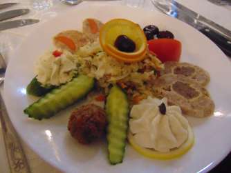 Сервираха ни огромен ордьовър, в който имаше зеленчуци, хайвер, колбаси и не знам какво още. Изкушавам се да го покажа.