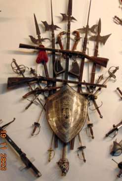 Следва оръжейната зала, с рицарски доспехи и много оръжие.
