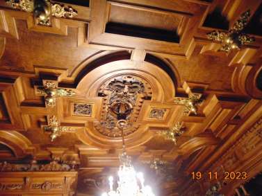 Следва приемната и работния кабинет на краля. Пак изящно дърво и някаква скромност. Таваните са впечатляващи.