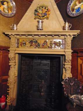 И тук има великолепен таван и също така великолепна камина. Интересно е,че камините в двореца, а те са навсякъде, имат декоративни функции. Отоплявано е с парно.
