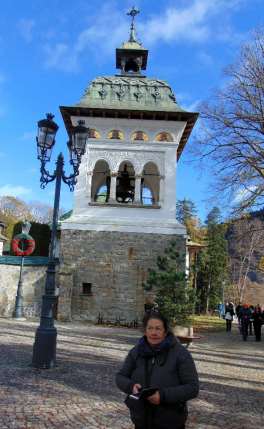 Правя последна снимка в Румъния. Тук Тамарка е с лице към манастирската порта, а зад гърба й има интересна сграда, която някога е била хотел с хубав ресторант. От години обаче била затворена….